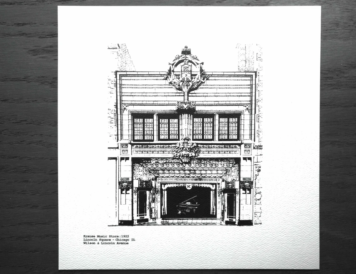 The Krause Music Store was the very last design completed by Louis Sullivan, a true architectural genius who was never fully appreciated during his lifetime. His organically inspired ornamental details, as seen on the façade of this store front, are a lasting legacy of a bygone era of beauty, craftsmanship, and attention to detail.