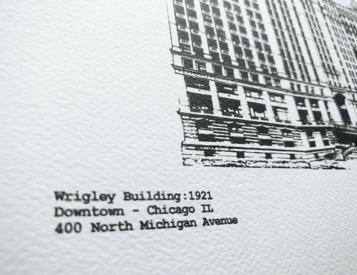 The Wrigley building is an architectural icon in the heart of Chicago at the intersection of Michigan Avenue & the Chicago River. The façade is still covered with the traditional glazed white terra-cotta which makes the building glow when it's lit up at night to show off its beautiful ornamental details.